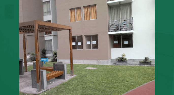 Primer piso, A.C. 64 m2, 02 dormitorios, escritorio que puede ser otro dormitorio, cuarto de servicio, 03 baños, sala/comedor, cocina/lavandería; zona céntrica, frente a parque interior del condominio y todos los ambientes tienen luz natural, pisos porcelanato, antigüedad 6 años, uso 2 años, ubicado en condominio casa hogar (jardines, gym, lavandería, sala reuniones, guardería, seguridad), muy bien ubicado en Av. Colonia Cdra.30 cruce con AV. Universitaria, al costado del supermercado Metro, cerca de Colegios y centro comerciales